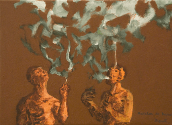 La serie Fumadores fue preparada para exponer junto con la serie de monotipos y grabados donde surgió el tema. Pequeños cuadros y no muy numerosos. A alguno de ellos creo que algún día le daré una vuelta.
